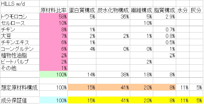 鶏肉粉で稼ぐと思われる蛋白質は、21%-5.1%=15.9%